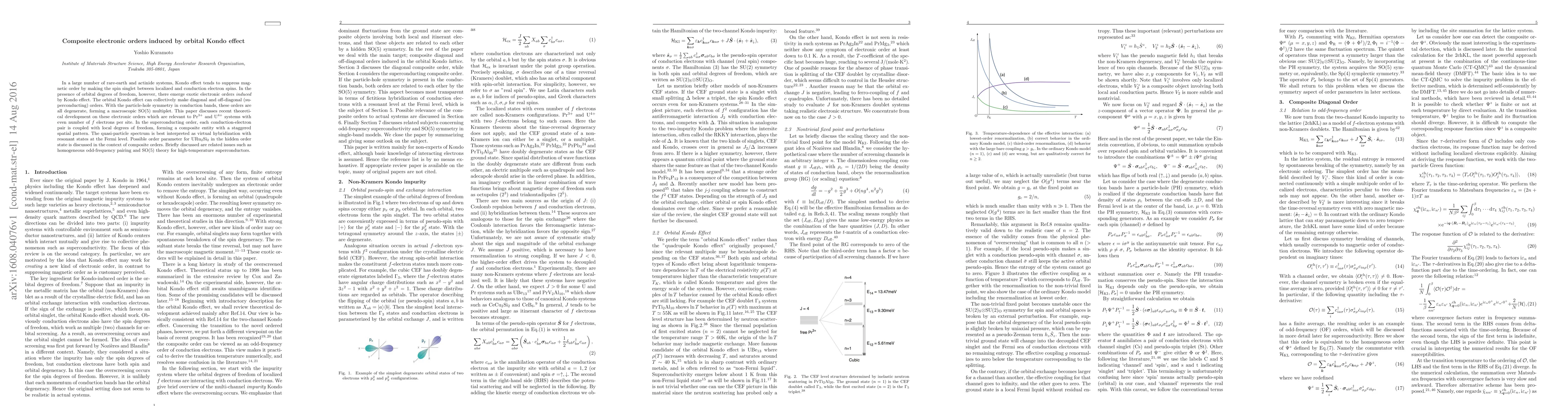 The paper discusses exotic electronic orders induced by the orbital Kondo effect in rare-earth and actinide systems, leading to macroscopic SO(5) multiplets with composite entities and virtual hybridization.