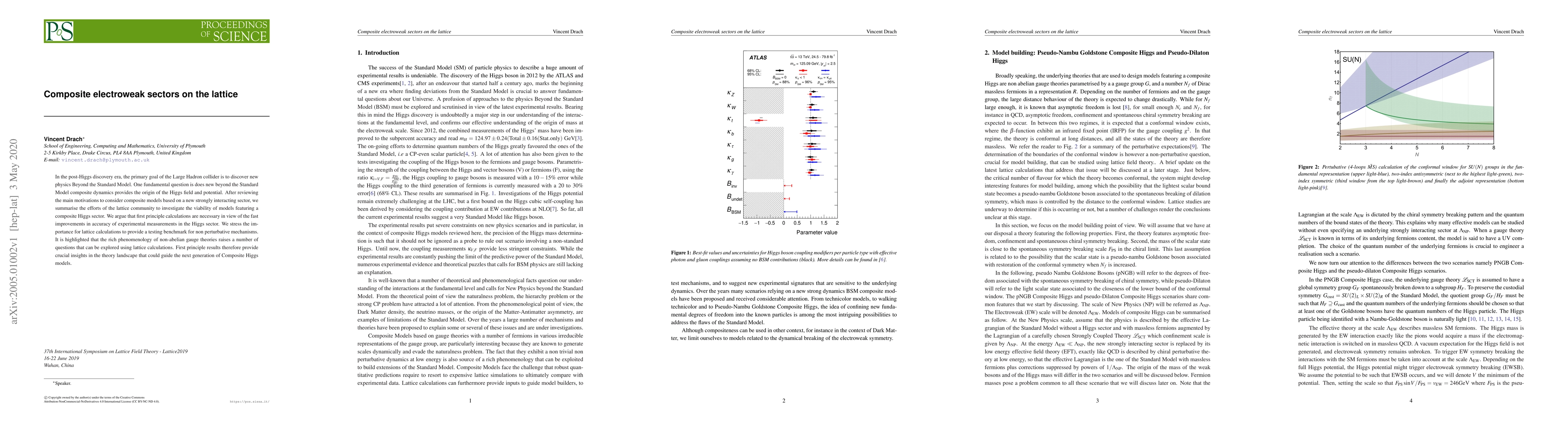 In the post-Higgs discovery era, the primary goal of the Large Hadron collider is to discover new physics Beyond the Standard Model. One fundamental question is does new beyond the Standard Model composite dynamics provides the origin of the Higgs field and potential. After reviewing the main motivations to consider composite models based on a new strongly interacting sector, we summarise the efforts of the lattice community to investigate the viability of models featuring a composite Higgs sector. We argue that first principle calculations are necessary in view of the fast improvements in accuracy of experimental measurements in the Higgs sector. We stress the importance for lattice calculations to provide a testing benchmark for non perturbative mechanisms. It is highlighted that the rich phenomenology of non-abelian gauge theories raises a number of questions that can be explored using lattice calculations. First principle results therefore provide crucial insights in the theory landscape that could guide the next generation of Composite Higgs models.
