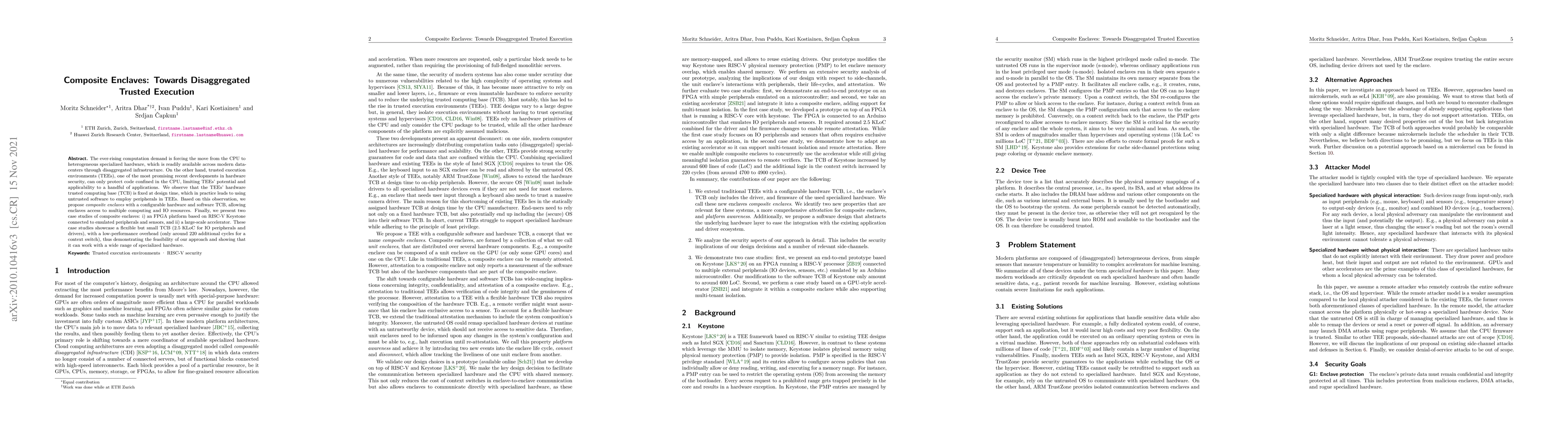 This paper proposes "composite enclaves" to extend trusted execution environments (TEEs) beyond CPU-only confinement, enabling access to specialized hardware like FPGAs and accelerators. The approach features a configurable hardware and software trusted computing base (TCB), demonstrated through two case studies with minimal performance overhead.