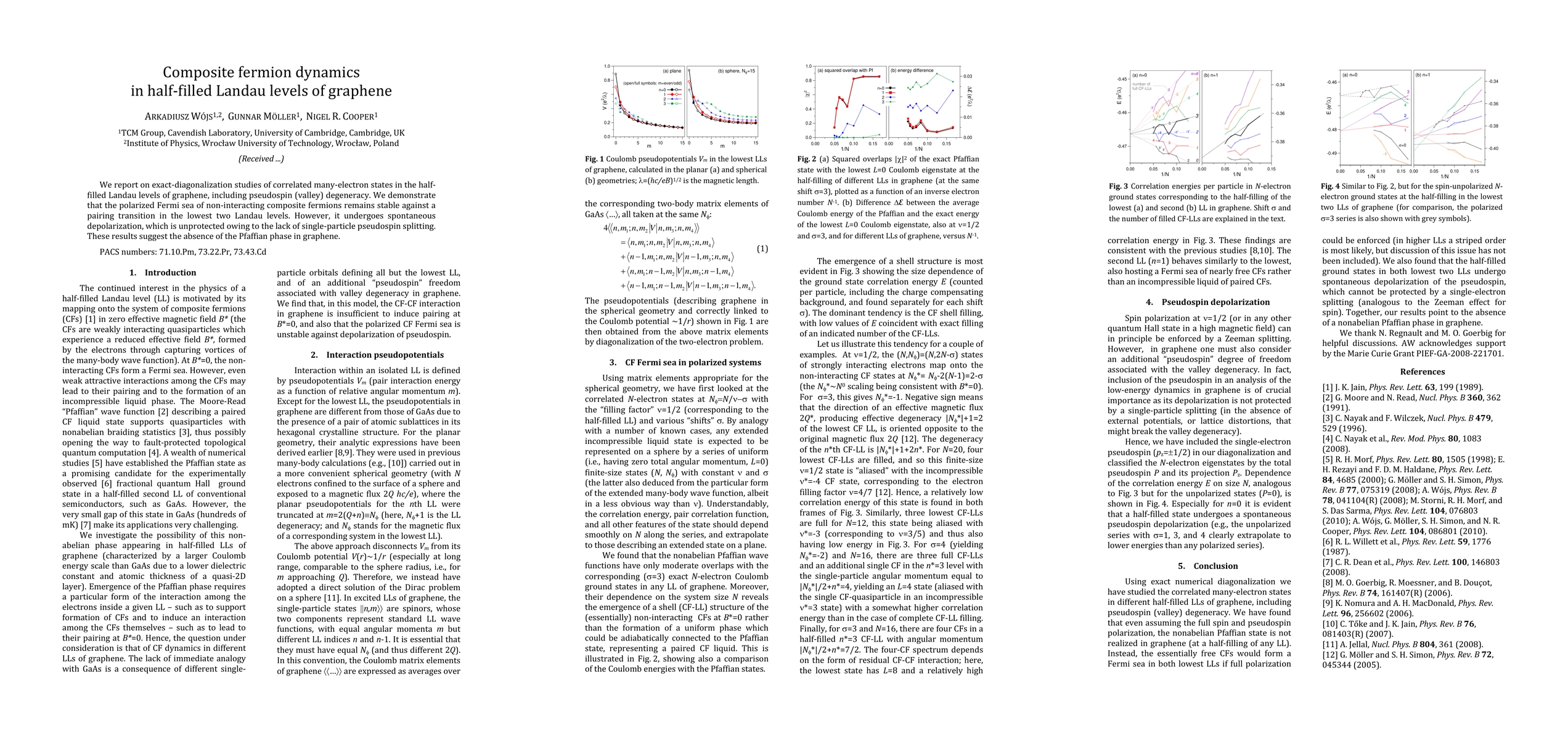 This study uses exact-diagonalization to investigate many-electron states in graphene's half-filled Landau levels, showing that the polarized Fermi sea of composite fermions is stable but undergoes spontaneous depolarization due to the absence of pseudospin splitting, indicating no Pfaffian phase in graphene.