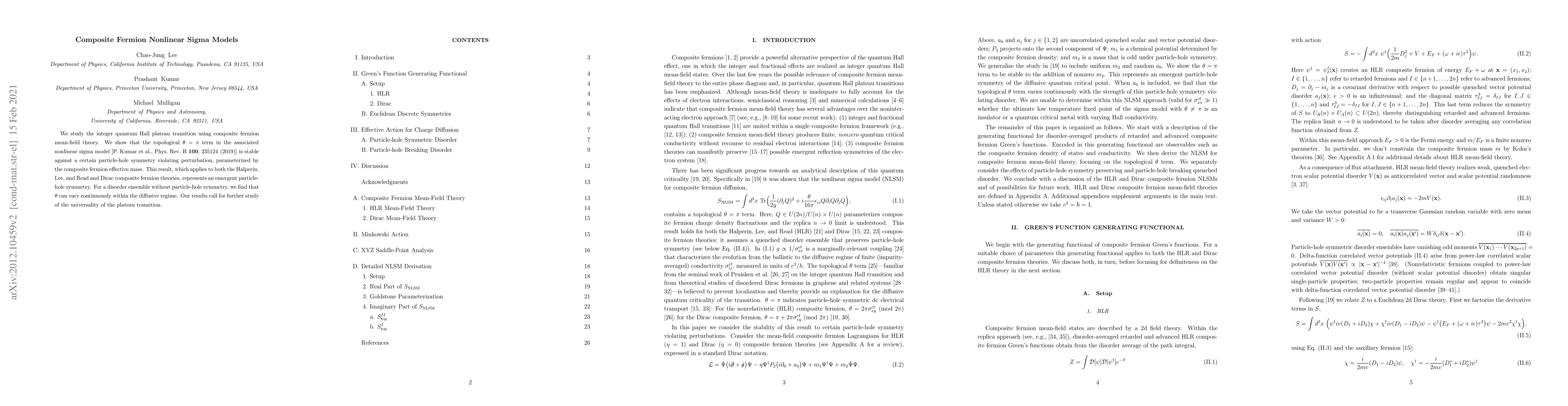 This paper investigates the stability of the topological $\theta = \pi$ term in composite fermion nonlinear sigma models during quantum Hall plateau transitions, revealing an emergent particle-hole symmetry. It also finds that $\theta$ can vary continuously in disordered systems without particle-hole symmetry.