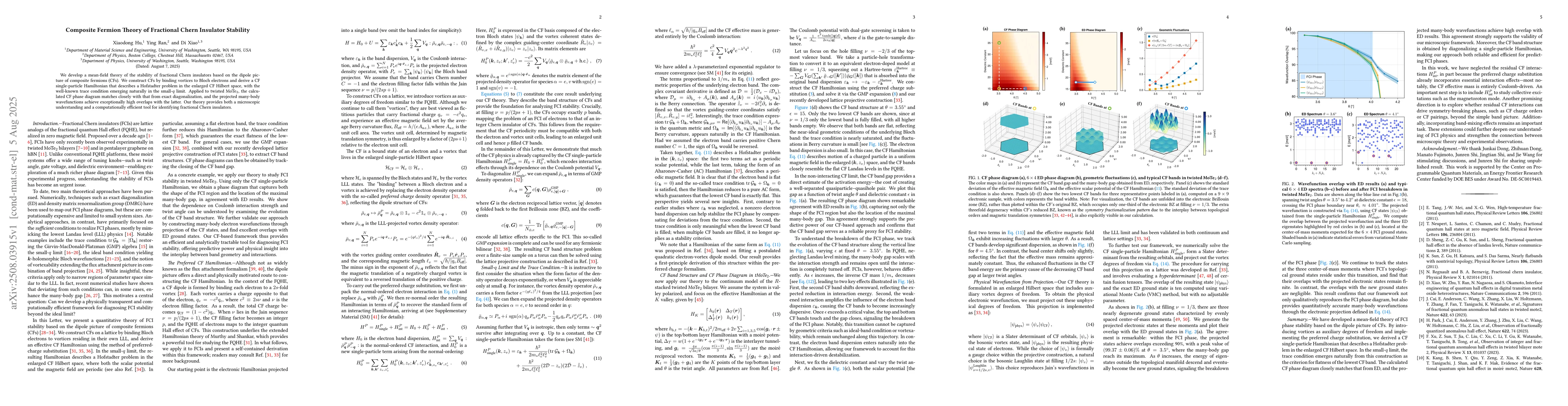 We develop a mean-field theory of the stability of fractional Chern insulators based on the dipole picture of composite fermions (CFs). We construct CFs by binding vortices to Bloch electrons and derive a CF single-particle Hamiltonian that describes a Hofstadter problem in the enlarged CF Hilbert space, with the well-known trace condition emerging naturally in the small-$q$ limit. Applied to twisted MoTe$_2$, the calculated CF phase diagram matches closely with that from exact diagonalization, and the projected many-body wavefunctions achieve exceptionally high overlaps with the latter. Our theory provides both a microscopic understanding and a computationally efficient tool for identifying fractional Chern insulators.