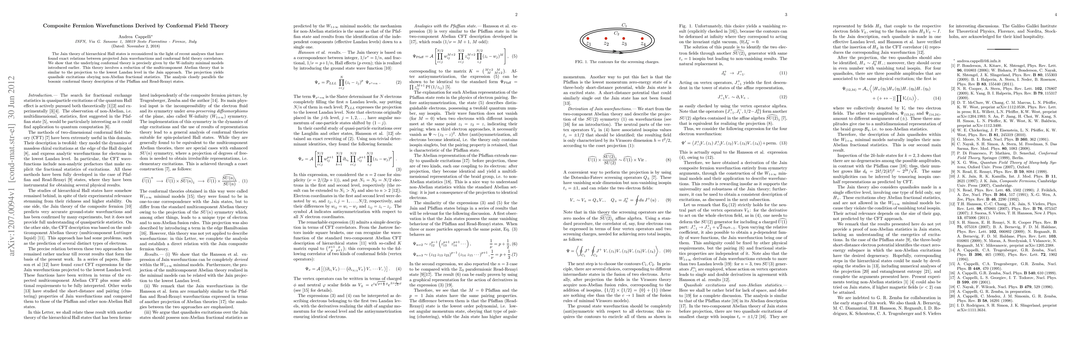 Researchers found that composite fermion wavefunctions can be derived from conformal field theory, specifically the W-infinity minimal models, which explains non-Abelian fractional statistics in quasihole excitations.