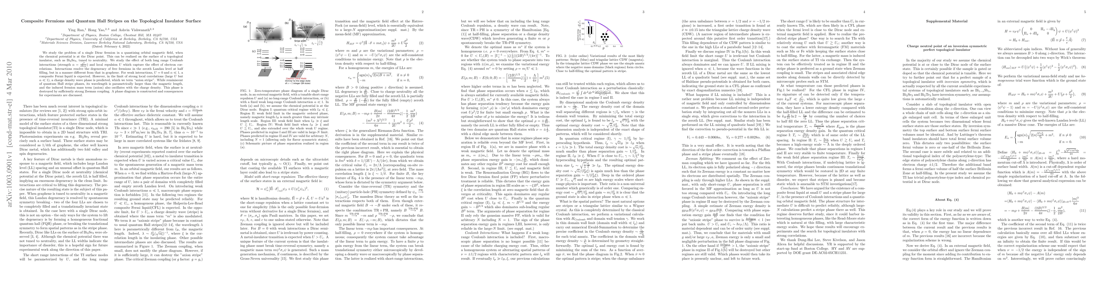 Researchers studied a Dirac fermion in a topological insulator with magnetic field, finding a new phase called the 'axion stripe' that's different from quantum Hall stripes, which can be destroyed by strong Zeeman coupling.
