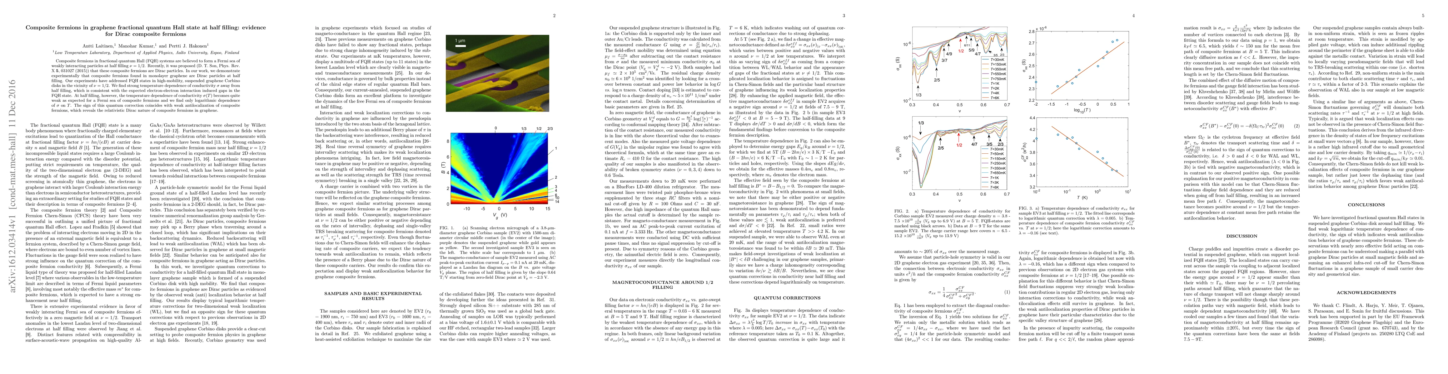 This paper experimentally confirms that composite fermions in graphene's fractional quantum Hall state at half filling exhibit Dirac particle behavior, evidenced by weak temperature dependence and a logarithmic conductivity correction, alongside weak antilocalization effects.