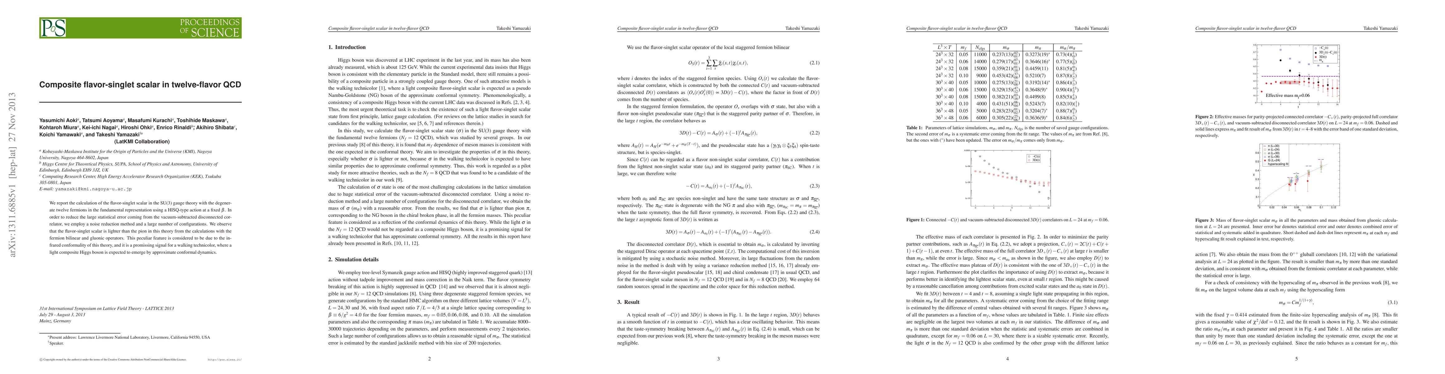 The paper presents a lattice calculation of the flavor-singlet scalar in twelve-flavor QCD, demonstrating a novel noise reduction method to handle large statistical errors in disconnected correlators.
