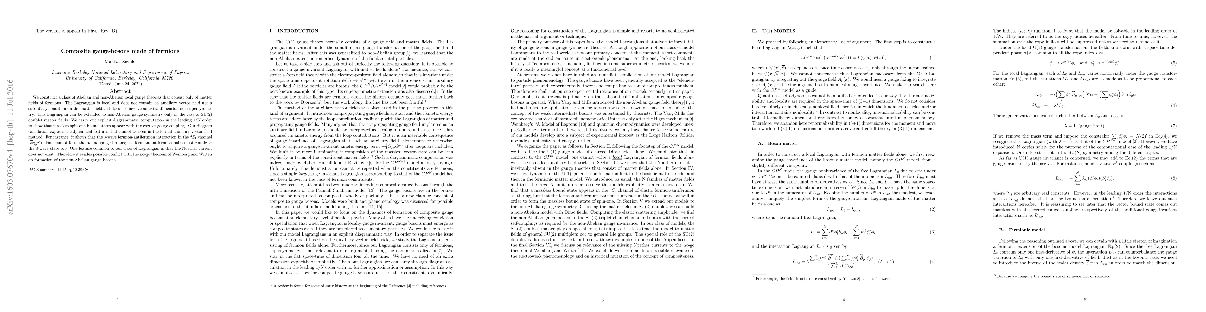 Researchers create a new class of gauge theories using only fermion matter fields, finding that massless spin-one bound states appear with the correct gauge coupling in SU(2) doublet models.