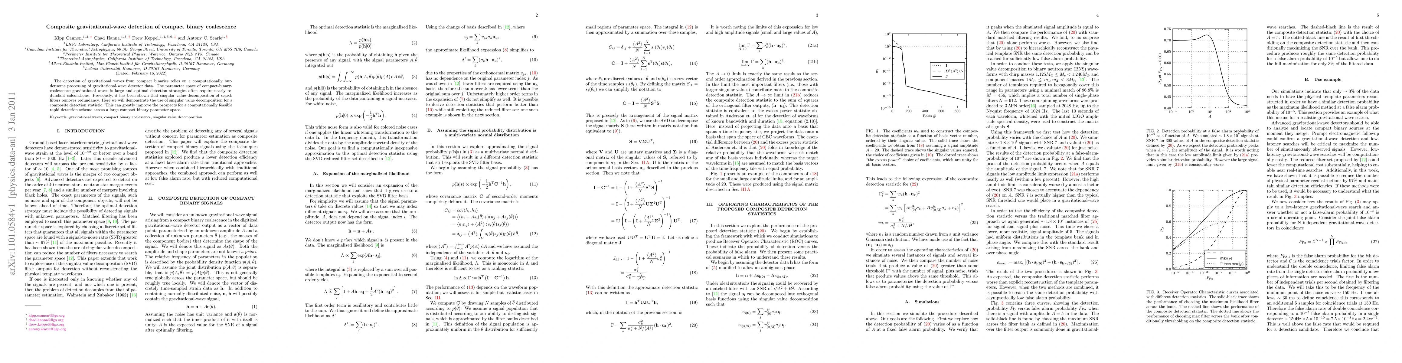 The detection of gravitational waves from compact binaries relies on a computationally burdensome processing of gravitational-wave detector data. The parameter space of compact-binary-coalescence gravitational waves is large and optimal detection strategies often require nearly redundant calculations. Previously, it has been shown that singular value decomposition of search filters removes redundancy. Here we will demonstrate the use of singular value decomposition for a composite detection statistic. This can greatly improve the prospects for a computationally feasible rapid detection scheme across a large compact binary parameter space.