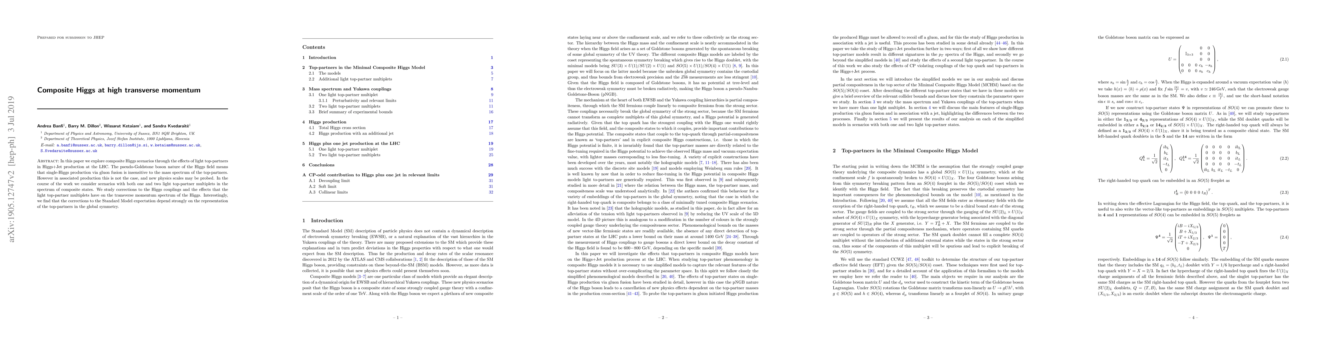In this paper we explore composite Higgs scenarios through the effects of light top-partners in Higgs+Jet production at the LHC. The pseudo-Goldstone boson nature of the Higgs field means that single-Higgs production via gluon fusion is insensitive to the mass spectrum of the top-partners. However in associated production this is not the case, and new physics scales may be probed. In the course of the work we consider scenarios with both one and two light top-partner multiplets in the spectrum of composite states. We study corrections to the Higgs couplings and the effects that the light top-partner multiplets have on the transverse momentum spectrum of the Higgs. Interestingly, we find that the corrections to the Standard Model expectation depend strongly on the representation of the top-partners in the global symmetry.