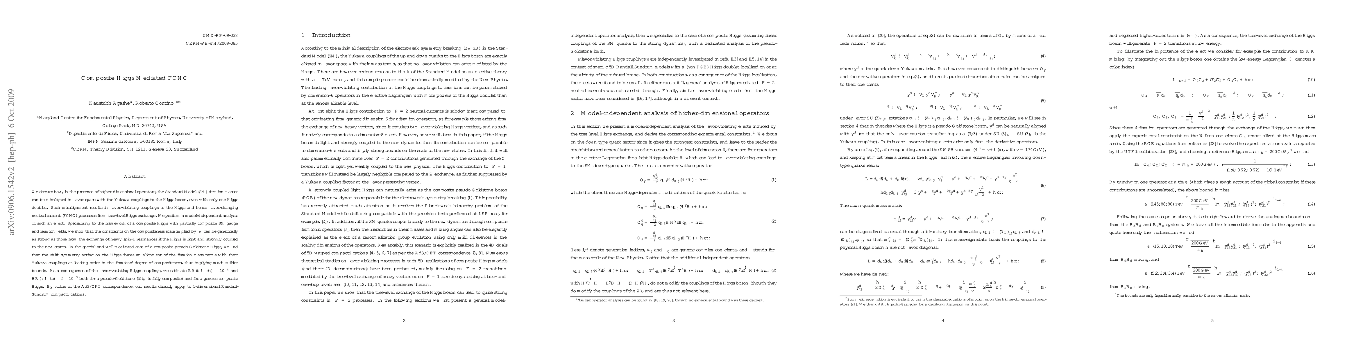 This paper explores how higher-dimensional operators can lead to misalignment between fermion masses and Yukawa couplings in the Standard Model, resulting in flavor-changing neutral currents via tree-level Higgs exchange. It finds that composite Higgs models can impose strong constraints on the compositeness scale, but pseudo-Goldstone Higgs scenarios yield milder bounds due to alignment enforced by the shift symmetry.