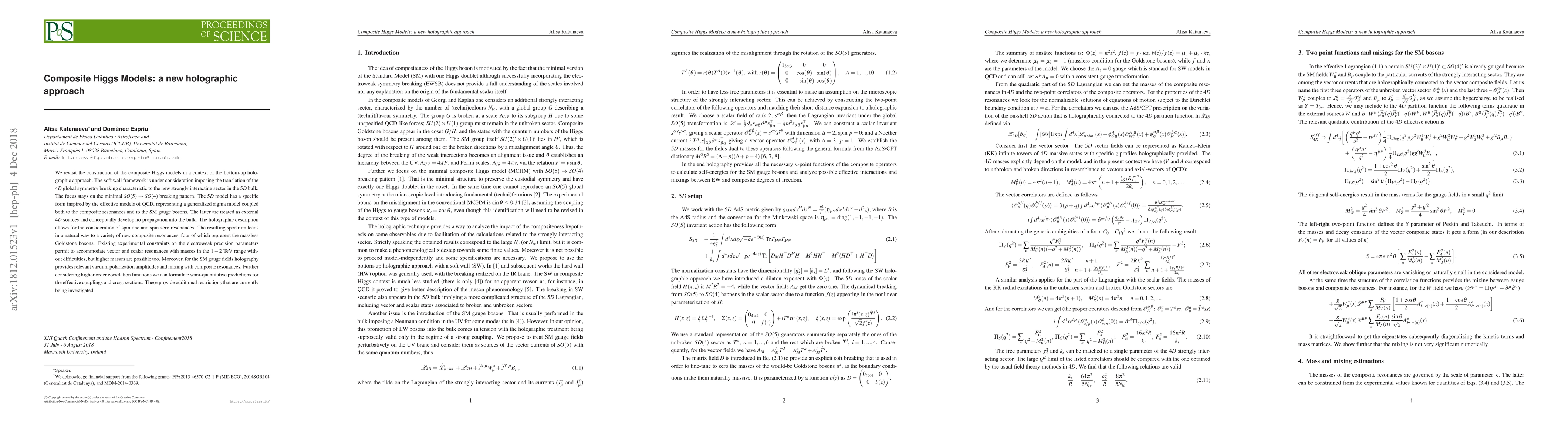 This research is significant as it presents a new holographic approach to composite Higgs models, offering a distinct Lagrangian of a generalized sigma model coupled to both composite resonances and SM gauge bosons. The model's ability to meet S parameter restrictions in large areas of the parameter space while accommodating resonances between 1 and 2 TeV is noteworthy.