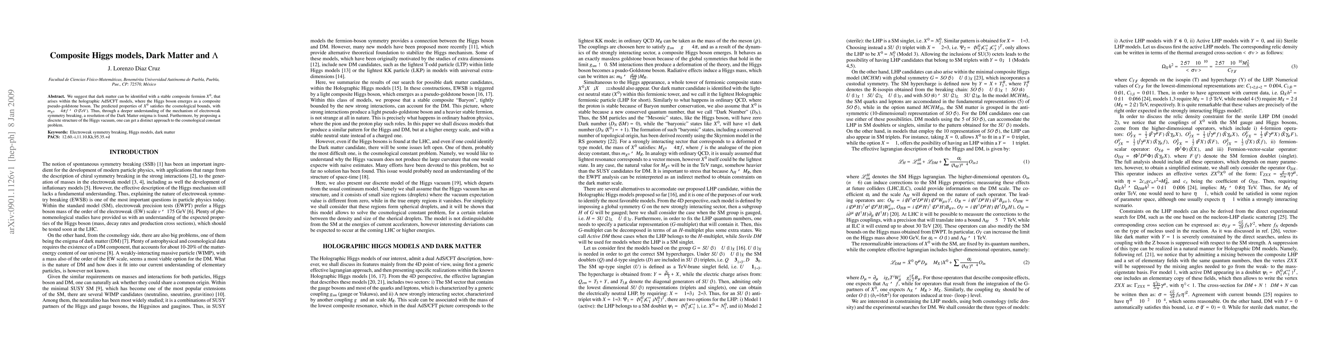 This paper proposes that dark matter is a stable composite fermion X^0 from holographic AdS/CFT models, where the Higgs boson is a composite pseudo-goldstone boson. This model resolves the dark matter enigma and offers a new perspective on the cosmological constant problem.