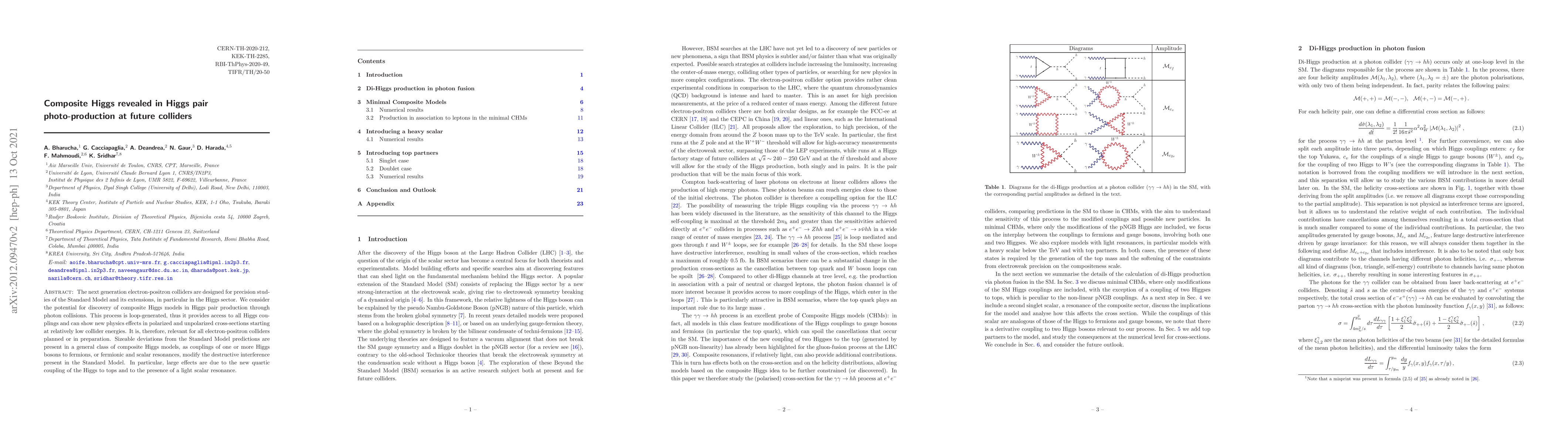 This paper explores the potential of future electron-positron colliders to reveal composite Higgs models through Higgs pair production via photon collisions. It highlights significant deviations from Standard Model predictions due to modified Higgs couplings and new quartic couplings, especially involving top quarks and light scalar resonances.