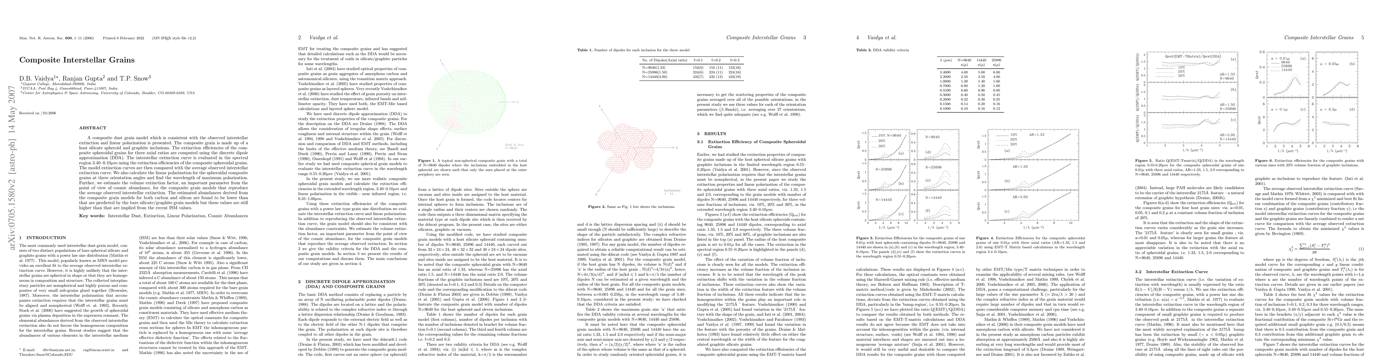 This paper investigates composite interstellar grains composed of silicate spheroids with graphite inclusions, computing their extinction efficiencies and comparing them to observed interstellar extinction curves. The study also evaluates linear polarization and volume extinction factors, revealing lower abundances for carbon and silicon compared to bare silicate/graphite models, though still higher than recent interstellar medium values.