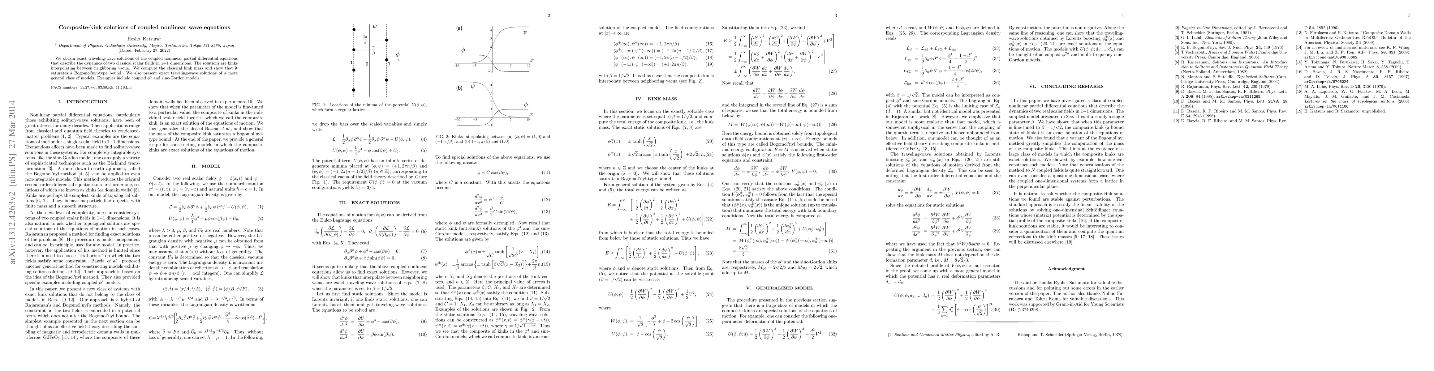 Researchers found exact traveling-wave solutions for coupled nonlinear wave equations, which describe the dynamics of two classical scalar fields, and showed that these solutions satisfy a Bogomol'nyi-type bound.