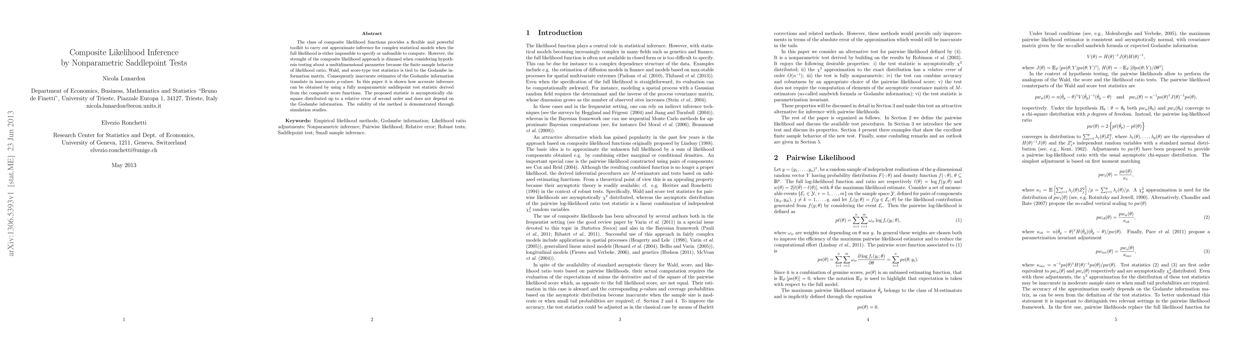 This paper proposes a nonparametric saddlepoint test statistic for composite likelihood inference, which provides accurate p-values independent of the Godambe information matrix, addressing the limitations of traditional test statistics in multidimensional hypothesis testing. The method's validity is confirmed through simulation studies.