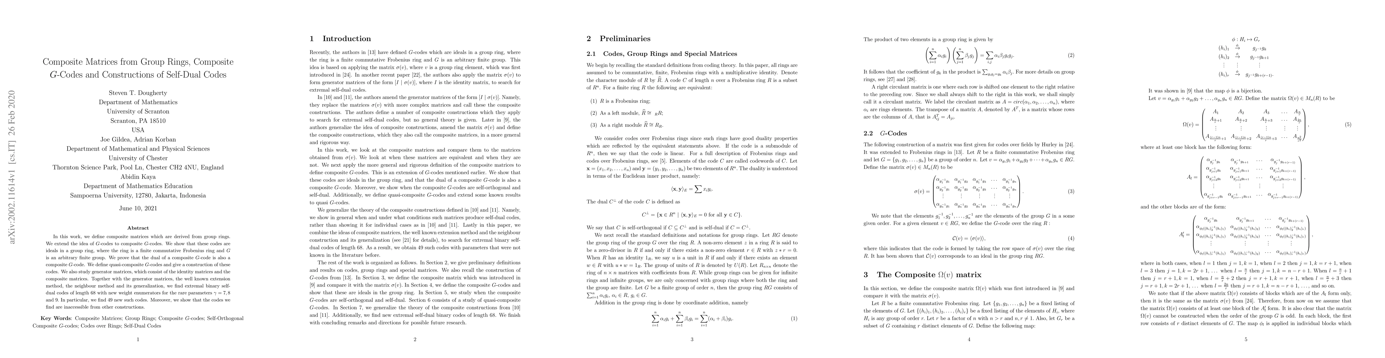 This paper defines composite matrices from group rings and extends G-codes to composite G-codes, proving their dual nature. It constructs quasi-composite G-codes and uses generator matrices to find new extremal binary self-dual codes of length 68, inaccessible by other methods.