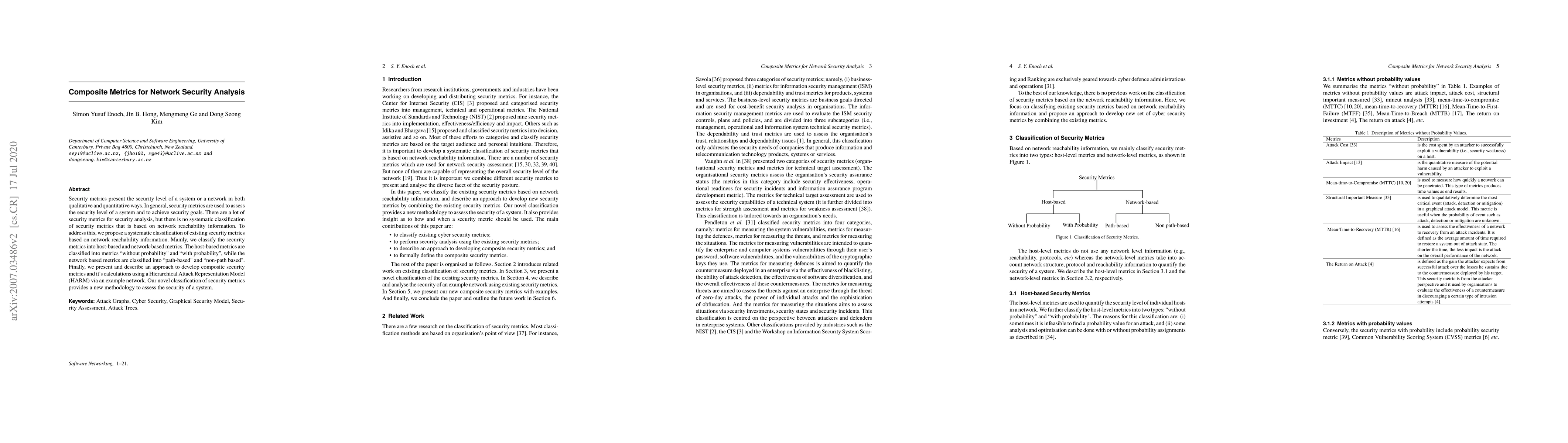 This paper proposes a systematic classification of security metrics based on network reachability information, categorizing them into host-based and network-based metrics. It also introduces a method for developing composite security metrics using a Hierarchical Attack Representation Model (HARM) to enhance system security assessment.