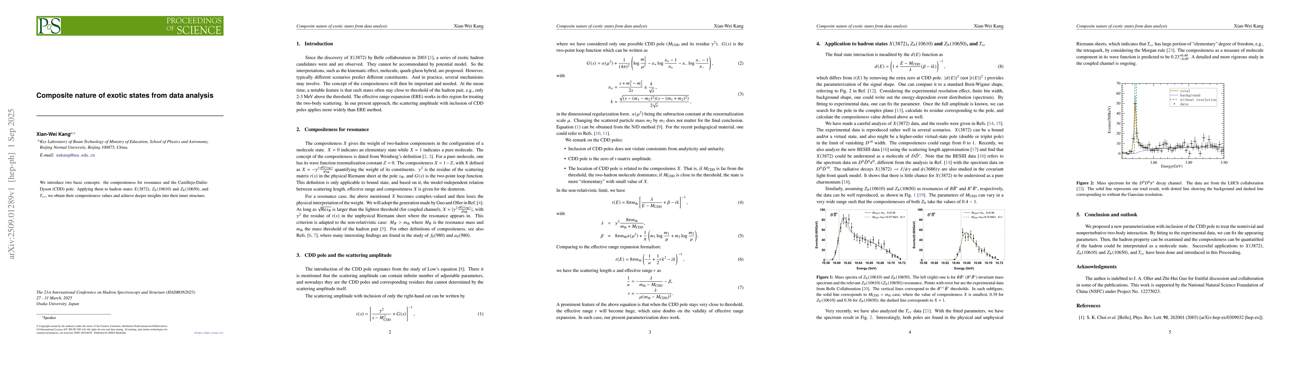 We introduce two basic concepts: the compositeness for resonance and the Castillejo-Dalitz-Dyson (CDD) pole. Applying them to hadron states $X(3872)$, $Z_b(10610)$ and $Z_b(10650)$, and $T_{cc}$, we obtain their compositeness values and achieve deeper insights into their inner structure.