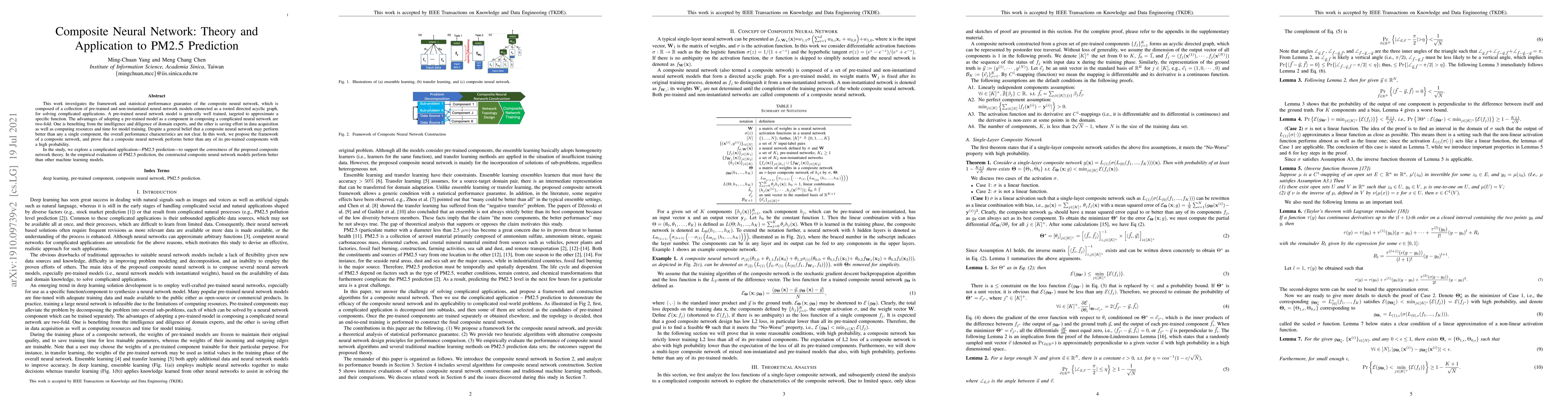 A new framework for composite neural networks is proposed, showing that adding pre-trained models can improve overall performance with high probability. The model was successfully applied to predict PM2.5 levels, outperforming other machine learning models.