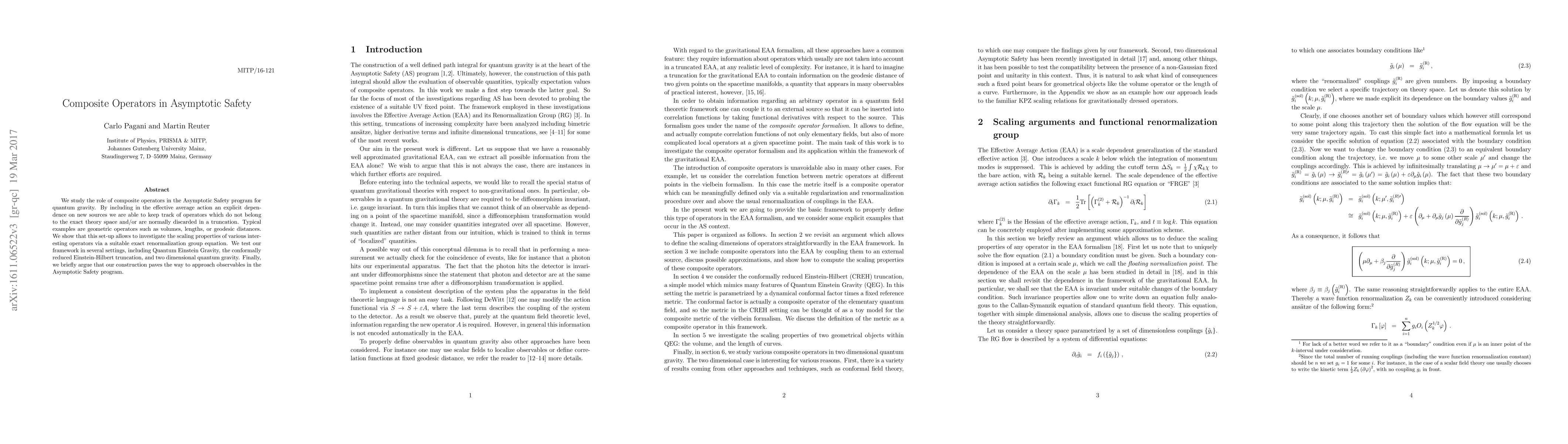 This paper explores the significance of composite operators in the Asymptotic Safety framework for quantum gravity, demonstrating how including new sources in the effective average action allows for the investigation of scaling properties of non-standard geometric operators. The authors apply their framework to Quantum Einstein Gravity and other settings, suggesting it facilitates the approach to observables in the Asymptotic Safety program.
