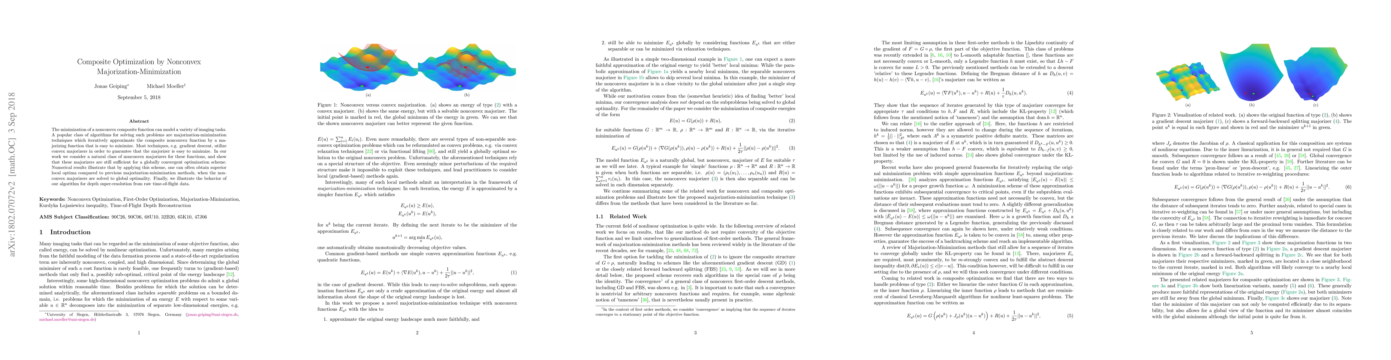 This paper proposes a novel nonconvex majorization-minimization method for optimizing composite nonconvex functions, demonstrating global convergence and superior local optima compared to convex majorizer methods. The algorithm is illustrated through depth super-resolution applications.