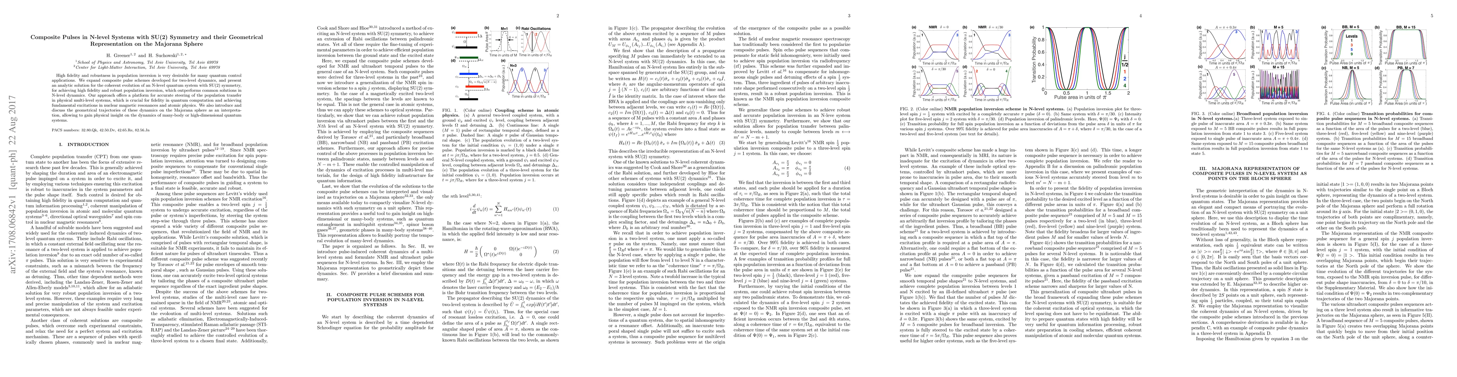 High fidelity and robustness in population inversion is very desirable for many quantum control applications. We expand composite pulse schemes developed for two-level dynamics, and present an analytic solution for the coherent evolution of an N-level quantum system with SU(2) symmetry, for achieving high fidelity and robust population inversion, which outperforms common solutions in N-level dynamics. Our approach offers a platform for accurate steering of the population transfer in physical multi-level systems, which is crucial for fidelity in quantum computation and achieving fundamental excitations in nuclear magnetic resonances and atomic physics. We also introduce and discuss the geometrical trajectories of these dynamics on the Majorana sphere as an interpretation, allowing to gain physical insight on the dynamics of many-body or high-dimensional quantum systems.