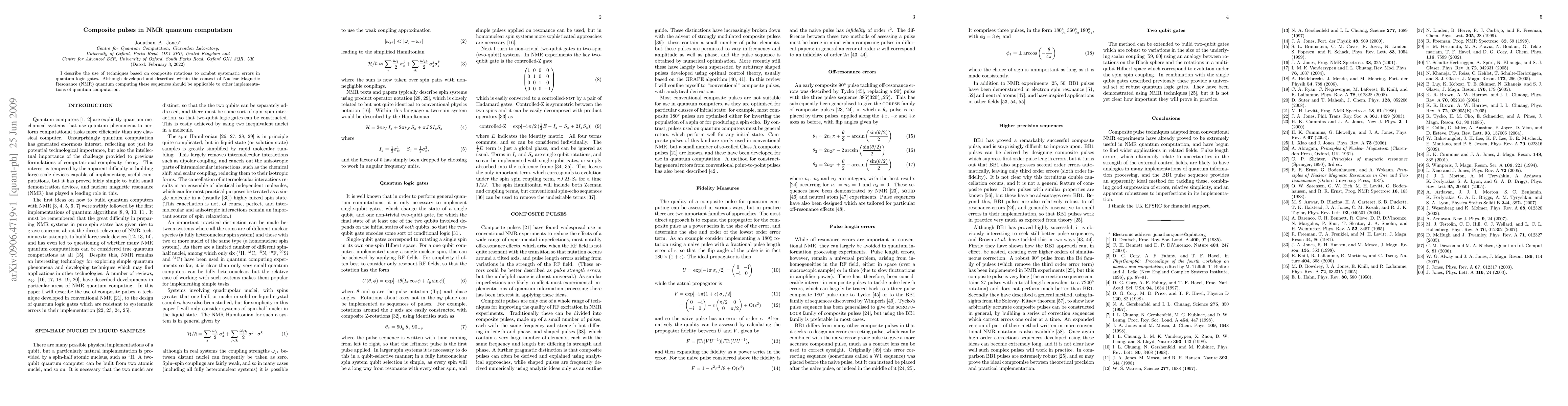 Summary: This paper discusses composite pulse techniques to mitigate systematic errors in NMR quantum computing, highlighting their potential applicability to other quantum computation platforms.