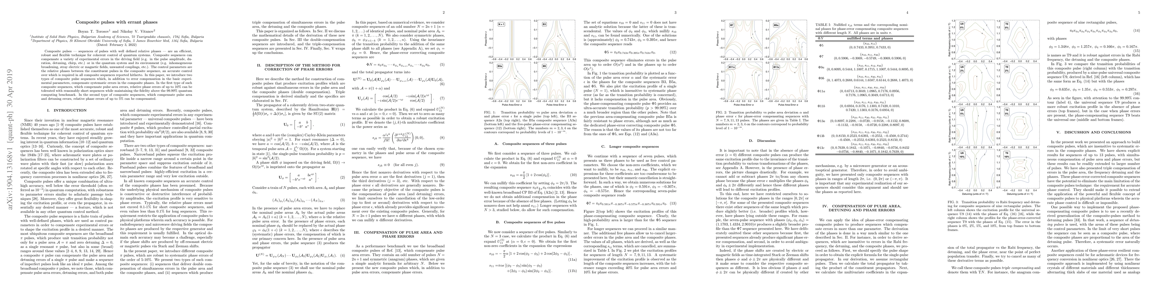 This work presents a novel approach to composite pulse sequences by incorporating compensation for systematic errors in composite phases, which was not addressed in previous research.