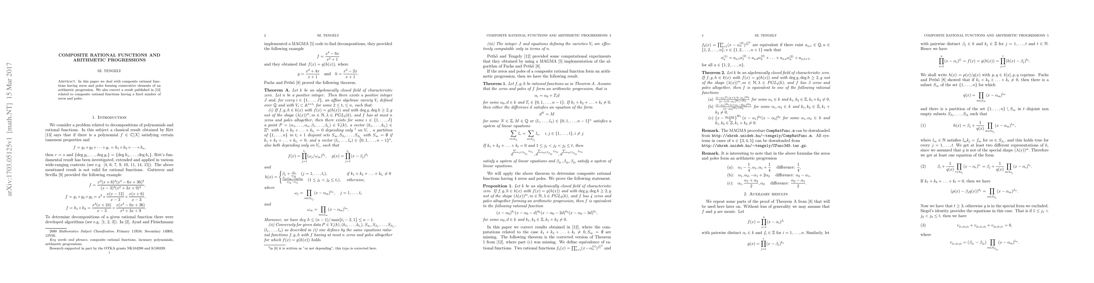 This paper investigates composite rational functions where zeros and poles align in arithmetic progressions, and corrects a previously published error concerning such functions with a fixed number of zeros and poles.