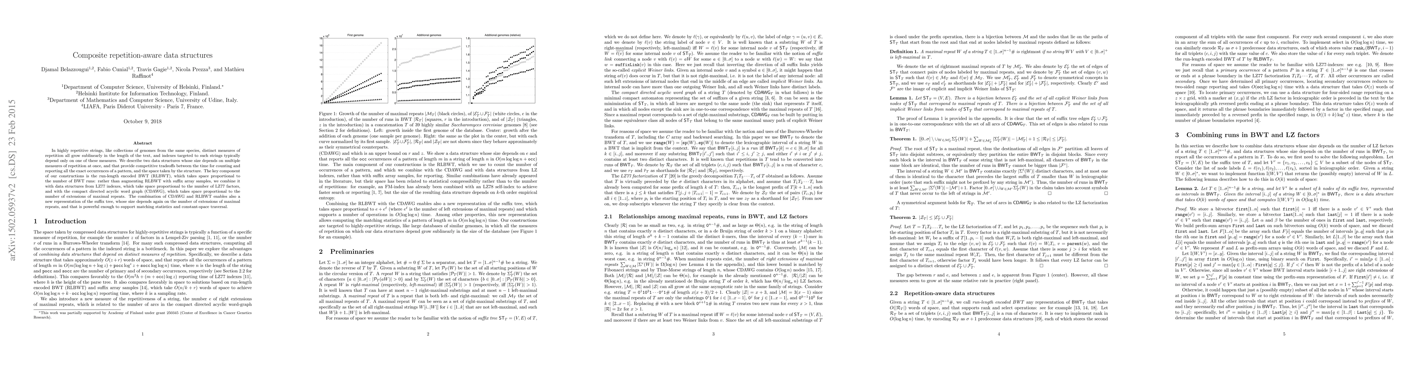 This paper introduces composite data structures that leverage multiple measures of repetition in highly repetitive strings, such as genomic sequences, to balance the trade-off between query efficiency and space usage. The key innovation is the run-length encoded BWT combined with LZ77 indexes and the compact directed acyclic word graph, enabling efficient pattern counting and reporting while optimizing space based on various repetition measures.