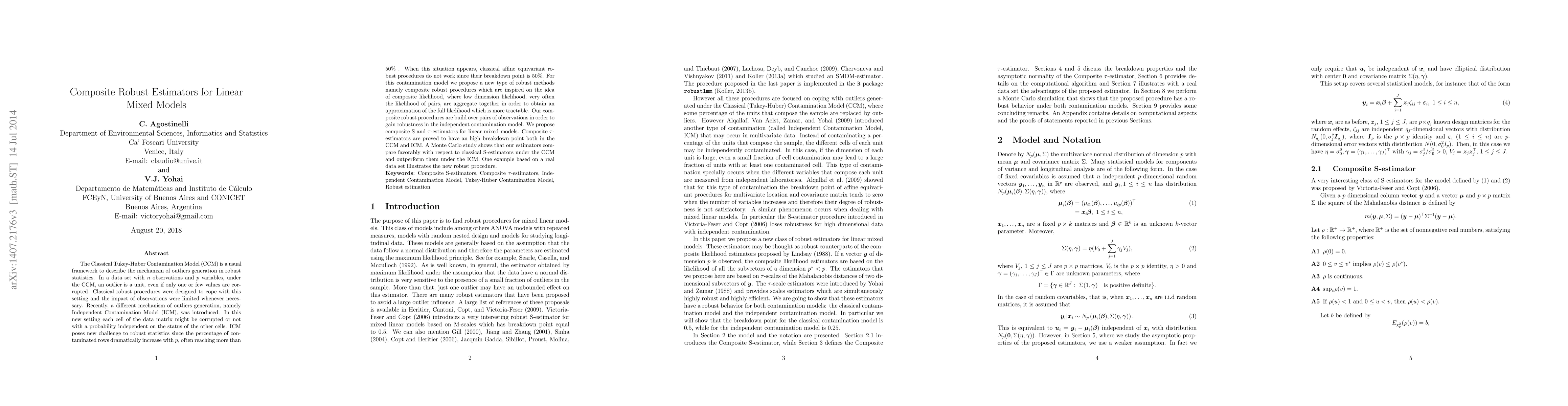 The Classical Tukey-Huber Contamination Model (CCM) is a usual framework to describe the mechanism of outliers generation in robust statistics. In a data set with $n$ observations and $p$ variables, under the CCM, an outlier is a unit, even if only one or few values are corrupted. Classical robust procedures were designed to cope with this setting and the impact of observations were limited whenever necessary. Recently, a different mechanism of outliers generation, namely Independent Contamination Model (ICM), was introduced. In this new setting each cell of the data matrix might be corrupted or not with a probability independent on the status of the other cells. ICM poses new challenge to robust statistics since the percentage of contaminated rows dramatically increase with $p$, often reaching more than $50\%$. When this situation appears, classical affine equivariant robust procedures do not work since their breakdown point is $50\%$. For this contamination model we propose a new type of robust methods namely composite robust procedures which are inspired on the idea of composite likelihood, where low dimension likelihood, very often the likelihood of pairs, are aggregate together in order to obtain an approximation of the full likelihood which is more tractable. Our composite robust procedures are build over pairs of observations in order to gain robustness in the independent contamination model. We propose composite S and $\tau$-estimators for linear mixed models. Composite $\tau$-estimators are proved to have an high breakdown point both in the CCM and ICM. A Monte Carlo study shows that our estimators compare favorably with respect to classical S-estimators under the CCM and outperform them under the ICM. One example based on a real data set illustrates the new robust procedure.