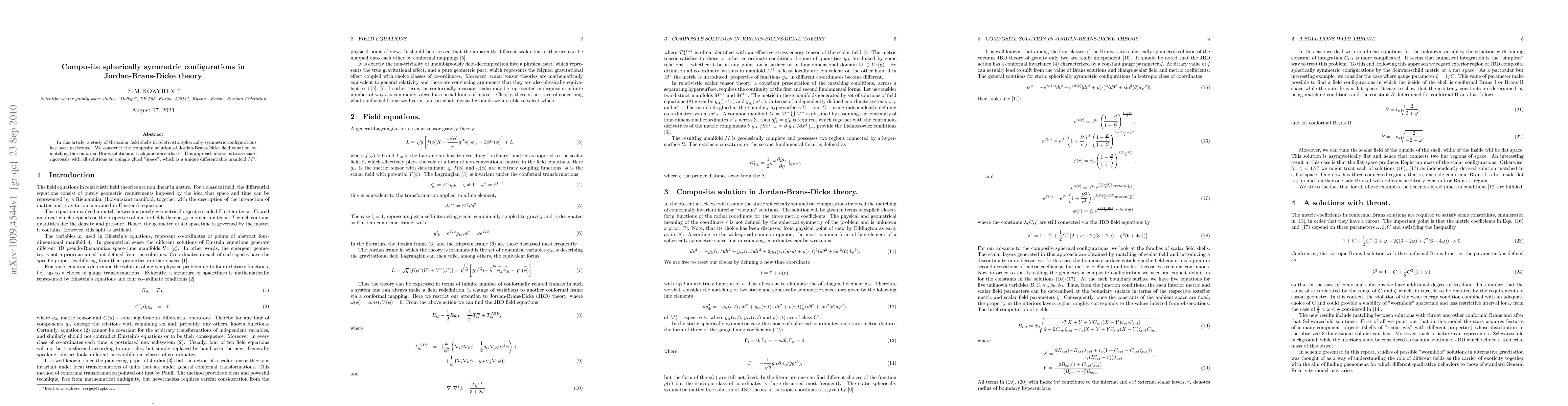 This paper investigates scalar field shells in relativistic spherically symmetric configurations within the framework of Jordan-Brans-Dicke theory, constructing composite solutions by matching conformal Brans solutions at junction surfaces, resulting in a unified differentiable manifold M^4.