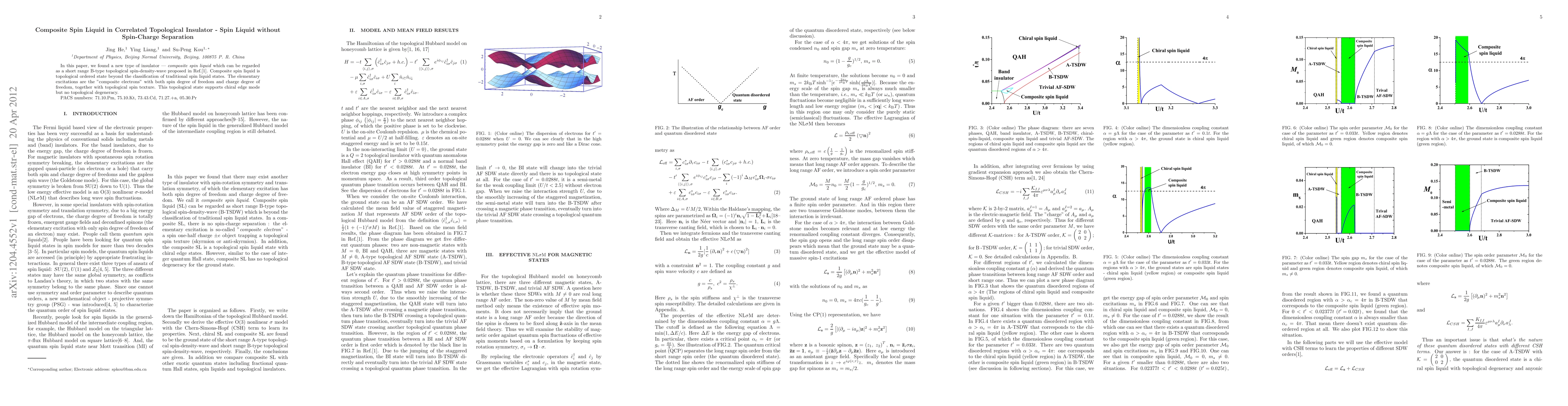 In this paper, we found a new type of insulator - composite spin liquid which can be regarded as a short range B-type topological spin-density-wave. Composite spin liquid is topological ordered state beyond the classification of traditional spin liquid states. The elementary excitations are the "composite electrons" with both spin degree of freedom and charge degree of freedom, together with topological spin texture. This topological state supports chiral edge mode but no topological degeneracy.