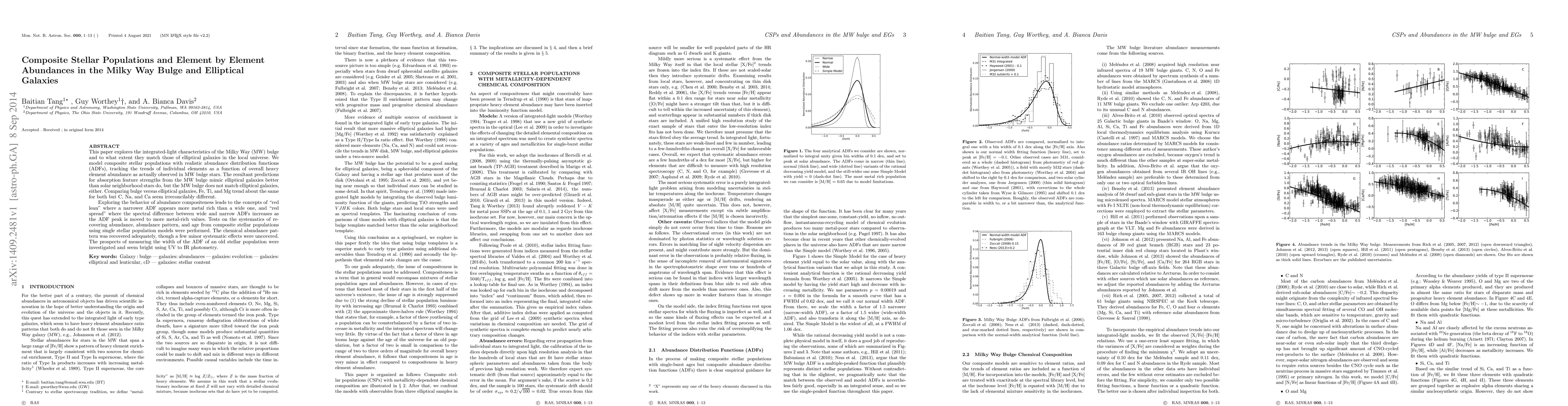 This paper explores the integrated-light characteristics of the Milky Way (MW) bulge and to what extent they match those of elliptical galaxies in the local universe. We model composite stellar populations with realistic abundance distribution functions (ADFs), tracking the trends of individual elements as a function of overall heavy element abundance as actually observed in MW bulge stars. The resultant predictions for absorption feature strengths from the MW bulge mimic elliptical galaxies better than solar neighborhood stars do, but the MW bulge does not match elliptical galaxies, either. Comparing bulge versus elliptical galaxies, Fe, Ti, and Mg trend about the same for both but C, Na, and Ca seem irreconcilably different. Exploring the behavior of abundance compositeness leads to the concepts of "red lean" where a narrower ADF appears more metal rich than a wide one, and "red spread" where the spectral difference between wide and narrow ADFs increases as the ADF peak is moved to more metal-rich values. Tests on the systematics of recovering abundance, abundance pattern, and age from composite stellar populations using single stellar population models were performed. The chemical abundance pattern was recovered adequately, though a few minor systematic effects were uncovered. The prospects of measuring the width of the ADF of an old stellar population were investigated and seem bright using UV to IR photometry.