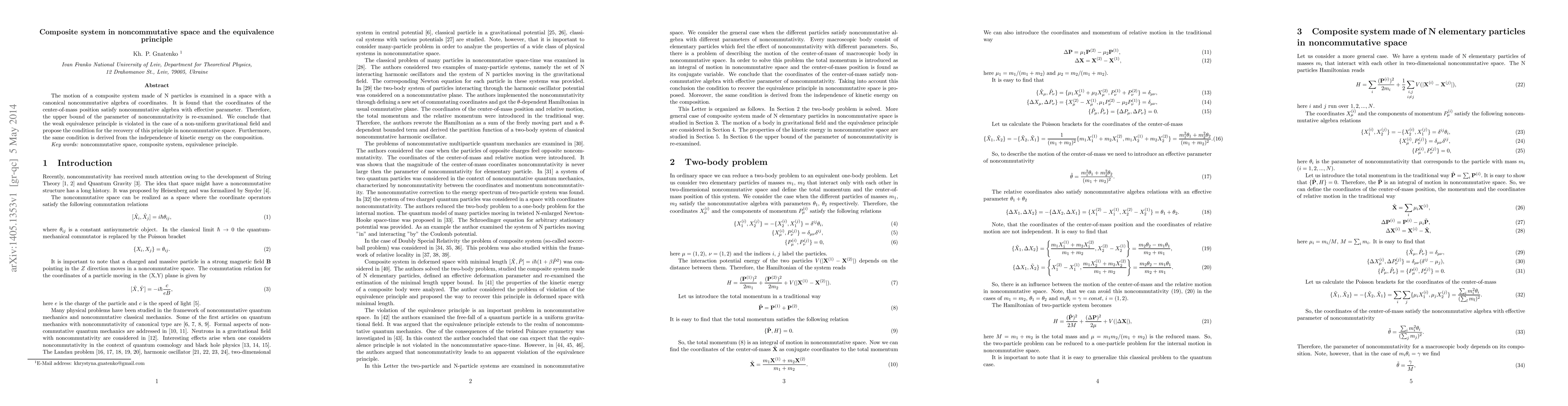 This paper investigates the motion of composite systems in noncommutative space, revealing that the center-of-mass coordinates follow a noncommutative algebra. It concludes that the weak equivalence principle is violated in non-uniform gravitational fields and proposes a condition for its recovery based on kinetic energy independence.