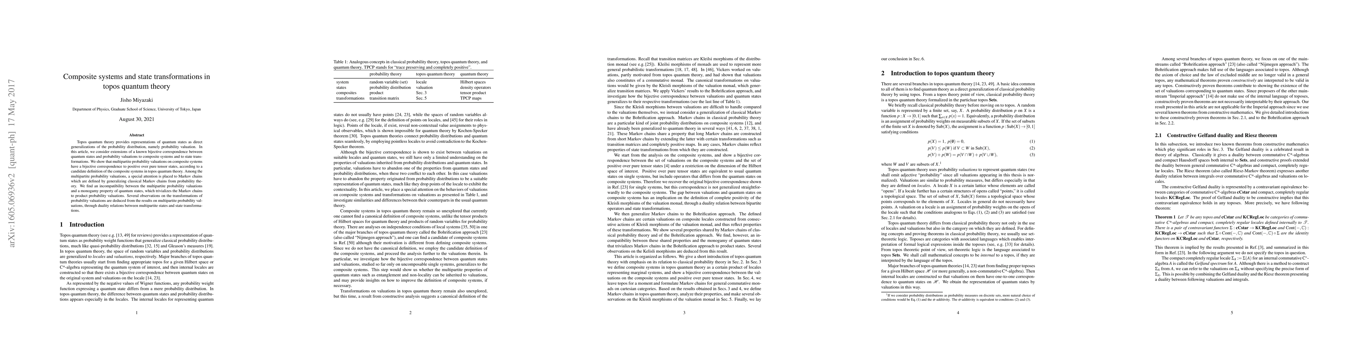 Topos quantum theory provides representations of quantum states as direct generalizations of the probability distribution, namely probability valuation. In this article, we consider extensions of a known bijective correspondence between quantum states and probability valuations to composite systems and to state transformations. We show that multipartite probability valuations on composite systems have a bijective correspondence to positive over pure tensor states, according to a candidate definition of the composite systems in topos quantum theory. Among the multipartite probability valuations, a special attention is placed to Markov chains which are defined by generalizing classical Markov chains from probability theory. We find an incompatibility between the multipartite probability valuations and a monogamy property of quantum states, which trivializes the Markov chains to product probability valuations. Several observations on the transformations of probability valuations are deduced from the results on multipartite probability valuations, through duality relations between multipartite states and state transformations.