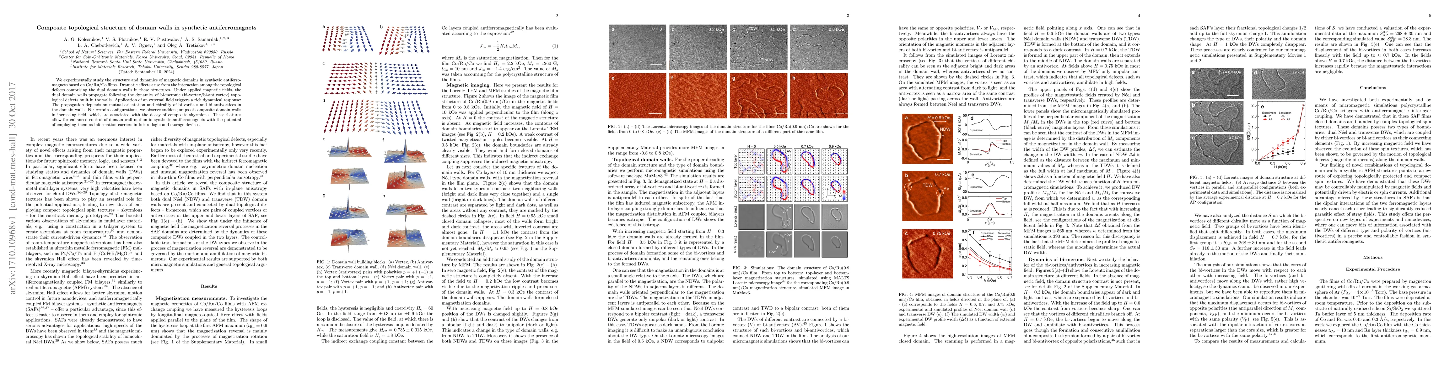 This paper investigates the composite topological structure and dynamics of magnetic domain walls in synthetic antiferromagnets, revealing that dual domain walls propagate through bi-meronic defects and exhibit complex responses to external fields, including sudden jumps linked to skyrmion decay, suggesting potential applications in advanced logic and storage devices.