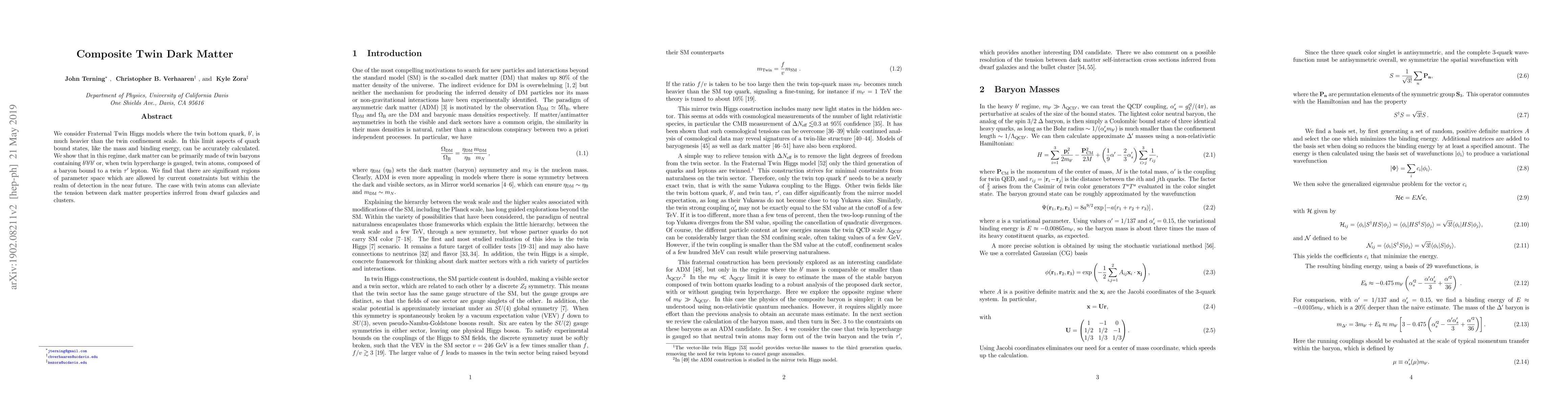 We consider Fraternal Twin Higgs models where the twin bottom quark, $b'$, is much heavier than the twin confinement scale. In this limit aspects of quark bound states, like the mass and binding energy, can be accurately calculated. We show that in this regime, dark matter can be primarily made of twin baryons containing $b' b' b'$ or, when twin hypercharge is gauged, twin atoms, composed of a baryon bound to a twin $\tau'$ lepton. We find that there are significant regions of parameter space which are allowed by current constraints but within the realm of detection in the near future. The case with twin atoms can alleviate the tension between dark matter properties inferred from dwarf galaxies and clusters.