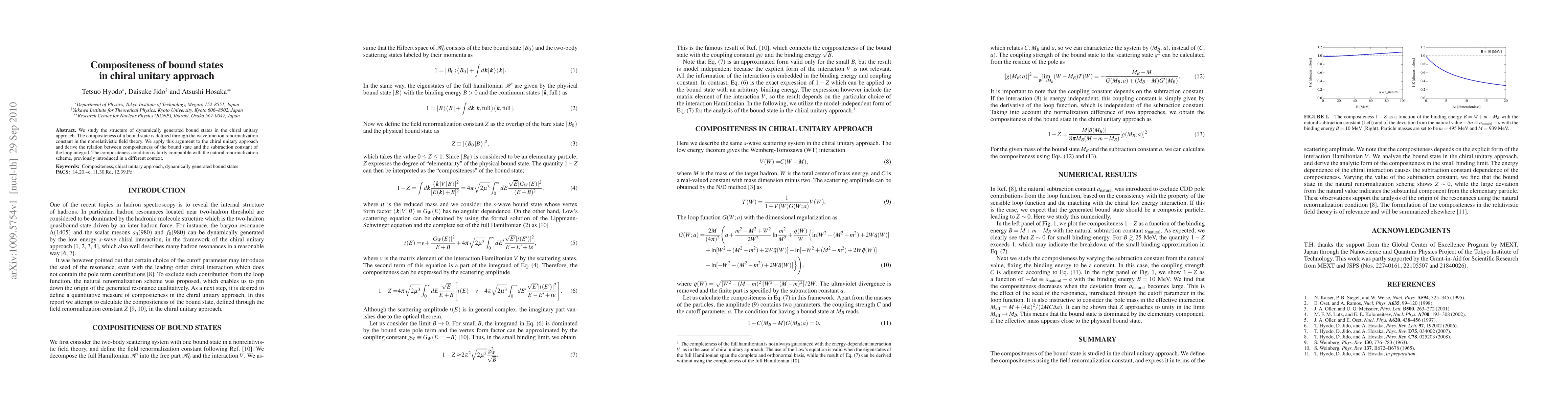 Researchers studied bound states in chiral unitary approach to determine if they are composites, finding a connection between compositeness and loop integral subtraction constants.