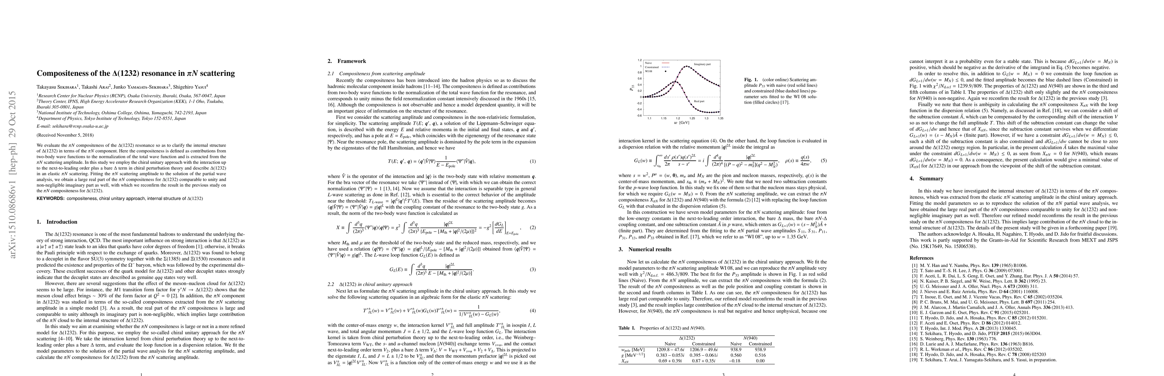 We evaluate the $\pi N$ compositeness of the $\Delta (1232)$ resonance so as to clarify the internal structure of $\Delta (1232)$ in terms of the $\pi N$ component. Here the compositeness is defined as contributions from two-body wave functions to the normalization of the total wave function and is extracted from the $\pi N$ scattering amplitude. In this study we employ the chiral unitary approach with the interaction up to the next-to-leading order plus a bare $\Delta$ term in chiral perturbation theory and describe $\Delta (1232)$ in an elastic $\pi N$ scattering. Fitting the $\pi N$ scattering amplitude to the solution of the partial wave analysis, we obtain a large real part of the $\pi N$ compositeness for $\Delta (1232)$ comparable to unity and non-negligible imaginary part as well, with which we reconfirm the result in the previous study on the $\pi N$ compositeness for $\Delta (1232)$.
