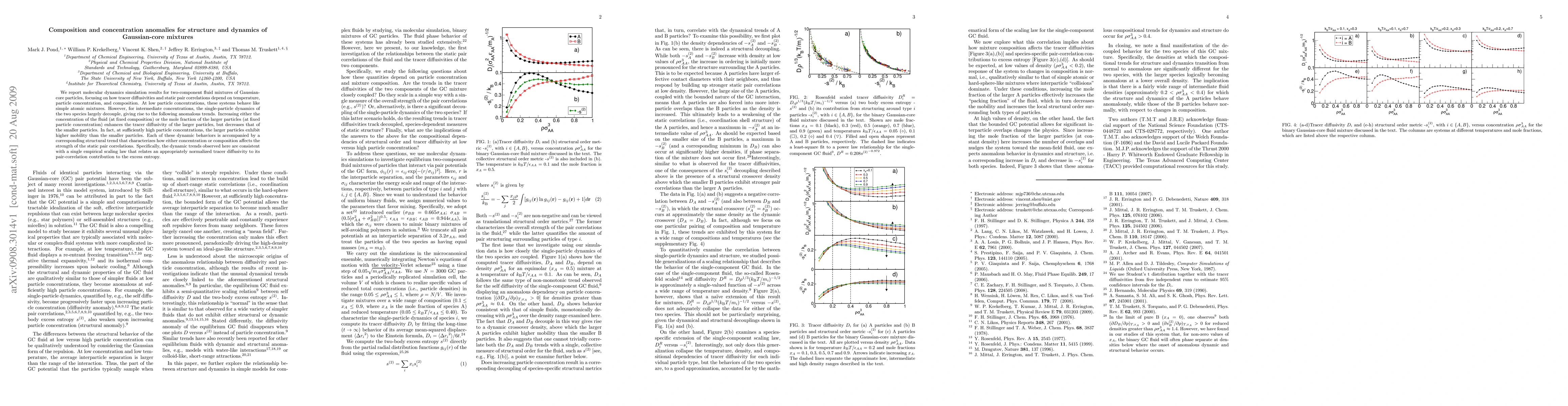This paper reports molecular dynamics simulations of two-component Gaussian-core particle mixtures, revealing anomalous trends in tracer diffusivities and static pair correlations influenced by concentration and composition. At intermediate concentrations, the dynamics of the two species decouple, with larger particles showing enhanced mobility compared to smaller ones.
