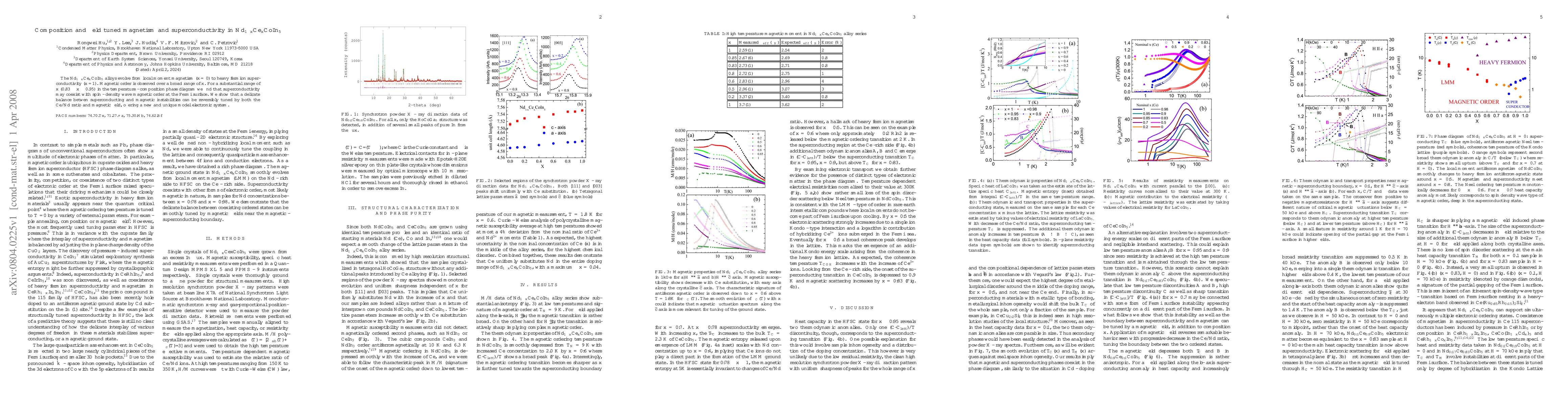 The Nd1-xCexCoIn5 alloys evolve from local moment magnetism (x = 0) to heavy fermion superconductivity (x =1). Magnetic order is observed over a broad range of x. For a substantial range of x (0.83 <= x <= 0.95) in the temperature - composition phase diagram we find that superconductivity may coexist with spin - density wave magnetic order at the Fermi surface. We show that a delicate balance betwen superconducting and magnetic instabilities can be reversibly tuned by both the Ce/Nd ratio and magnetic field, offering a new and unique model electronic system.