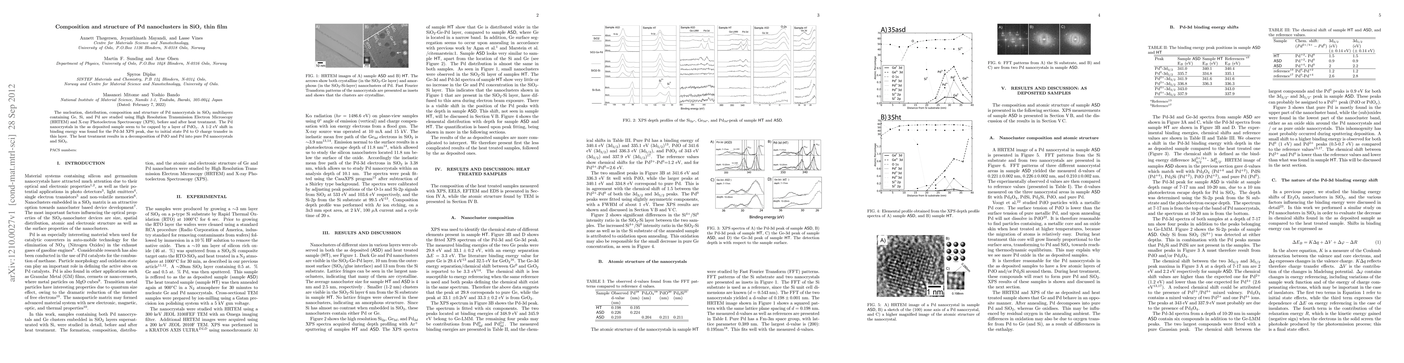 The nucleation, distribution, composition and structure of Pd nanocrystals in SiO$_2$ multilayers containing Ge, Si, and Pd are studied using High Resolution Transmission Electron Microscopy (HRTEM) and X-ray Photoelectron Spectroscopy (XPS), before and after heat treatment. The Pd nanocrystals in the as deposited sample seem to be capped by a layer of PdO$_x$. A 1-2 eV shift in binding energy was found for the Pd-3d XPS peak, due to initial state Pd to O charge transfer in this layer. The heat treatment results in a decomposition of PdO and Pd into pure Pd nanocrystals and SiO$_2$.