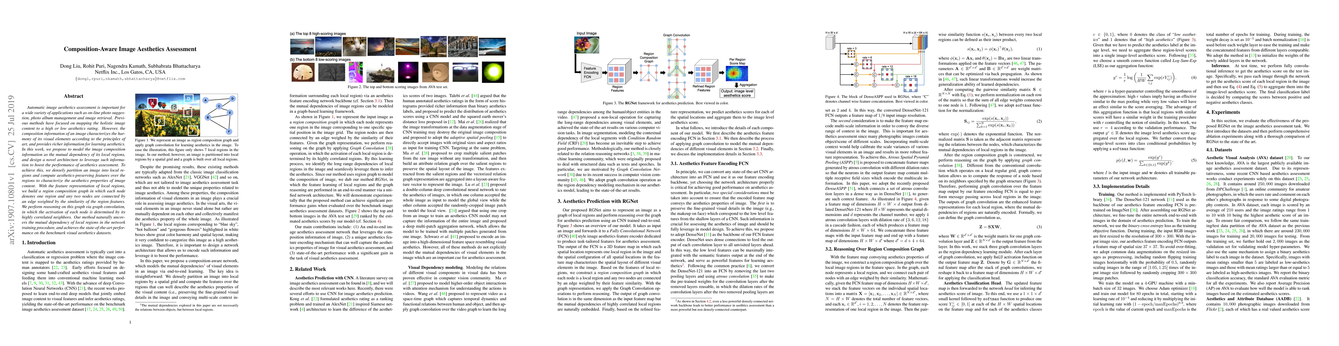 This paper proposes a novel architecture for automatic image aesthetics assessment by modeling the composition information of local regions through a region composition graph and graph convolution, achieving state-of-the-art performance on benchmark datasets. The method densely partitions images into regions and computes features to characterize aesthetics, leveraging mutual dependencies for enhanced assessment.