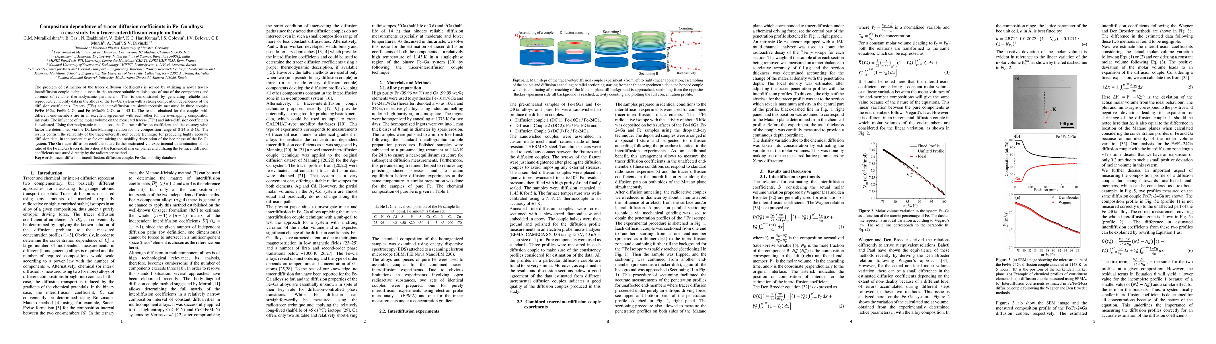 This study employs a novel tracer-interdiffusion couple technique to estimate tracer diffusion coefficients in Fe-Ga alloys, demonstrating reliable mobility data across varying compositions. The method successfully measures both tracer- (59Fe) and inter-diffusion in Fe/Fe-Ga couples at 1143 K, confirming the accuracy of the technique for optimizing the mobility description of the Fe-Ga bcc phase.