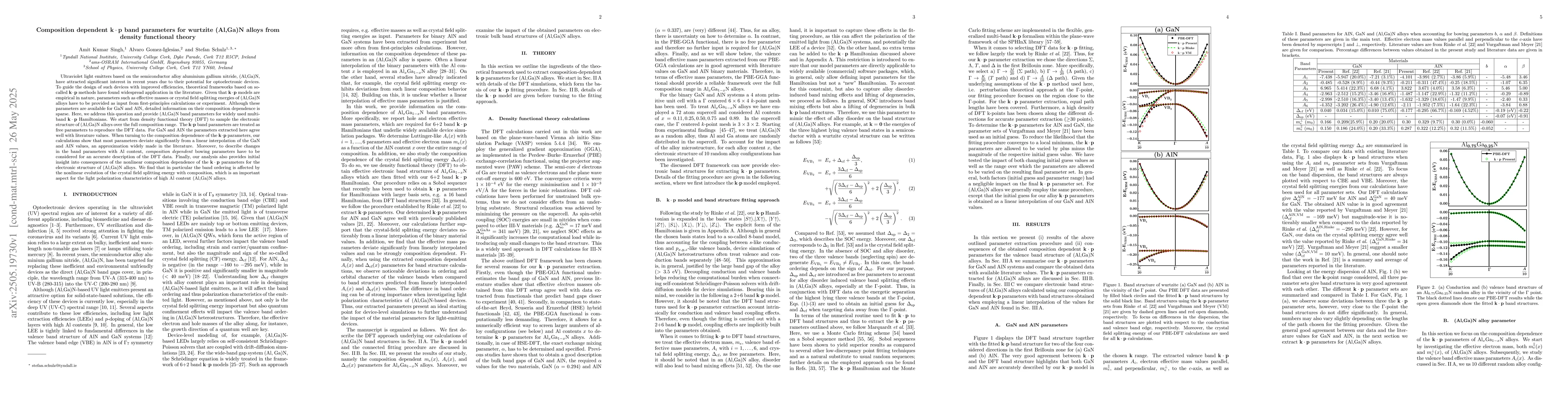 The paper presents composition-dependent k.p band parameters for (Al,Ga)N alloys derived from DFT calculations, addressing the lack of detailed information in the literature.
