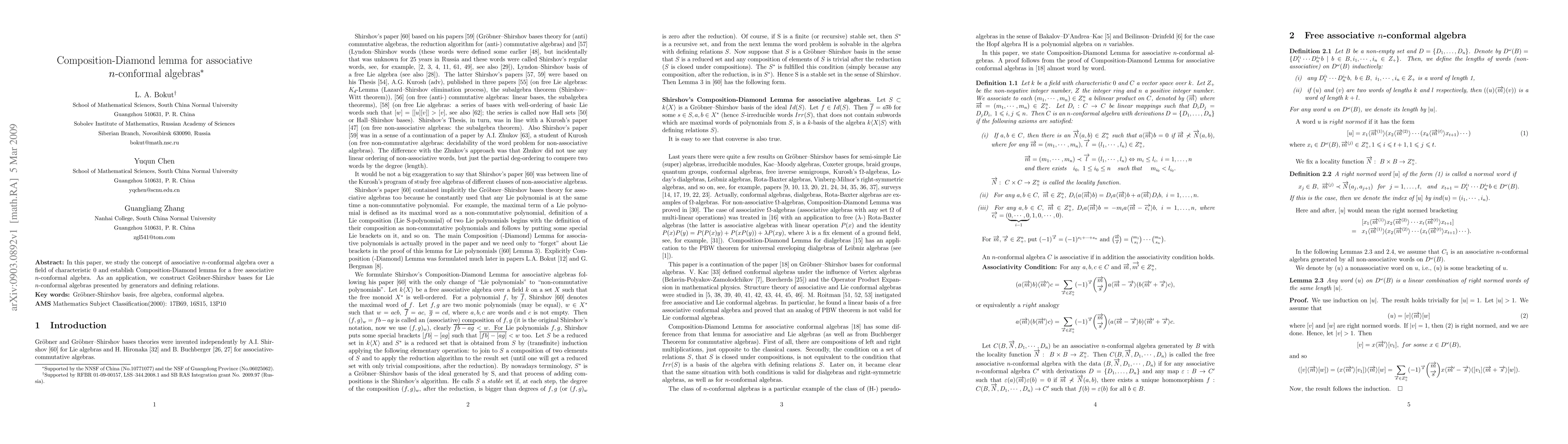 In this paper, we study the concept of associative $n$-conformal algebra over a field of characteristic 0 and establish Composition-Diamond lemma for a free associative $n$-conformal algebra. As an application, we construct Gr\"{o}bner-Shirshov bases for Lie $n$-conformal algebras presented by generators and defining relations.