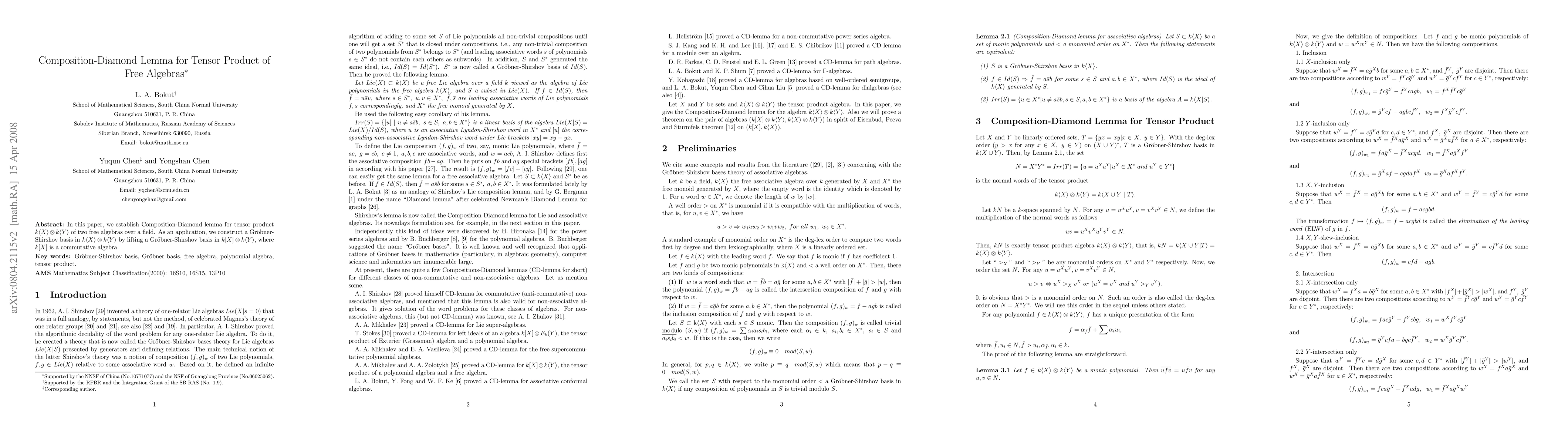 This paper establishes the Composition-Diamond lemma for the tensor product of two free algebras, $k<X> \otimes k<Y>$, and uses it to construct a Groebner-Shirshov basis in this algebra by lifting a basis from a commutative algebra $k[X] \otimes k<Y>$.