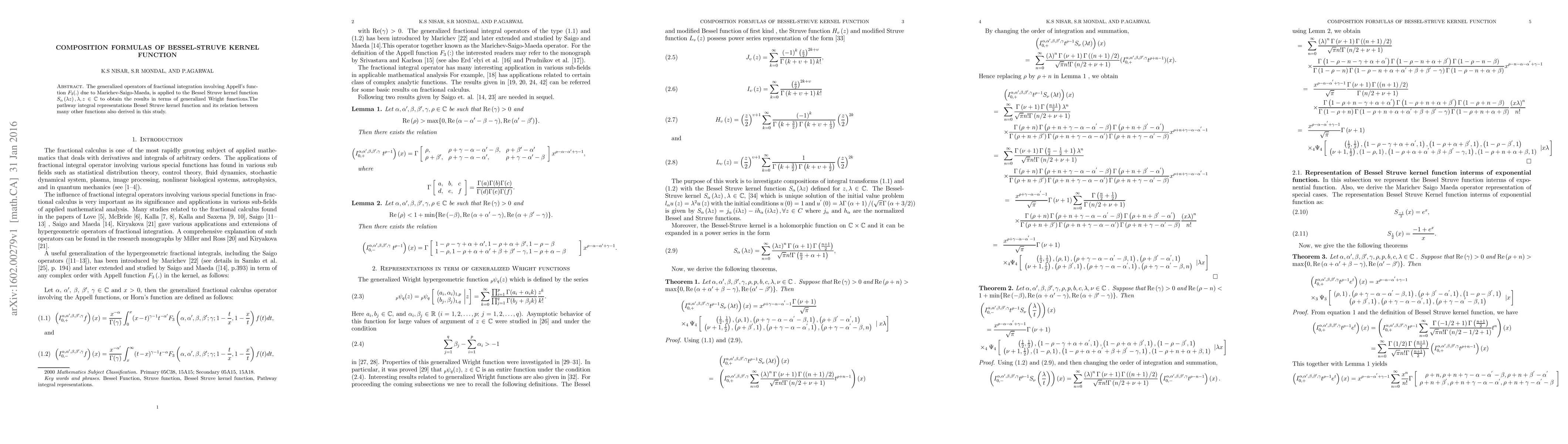 This paper applies generalized fractional integration operators involving Appell's function to the Bessel-Struve kernel function, deriving results in terms of generalized Wright functions and establishing integral representations and relationships with other functions.